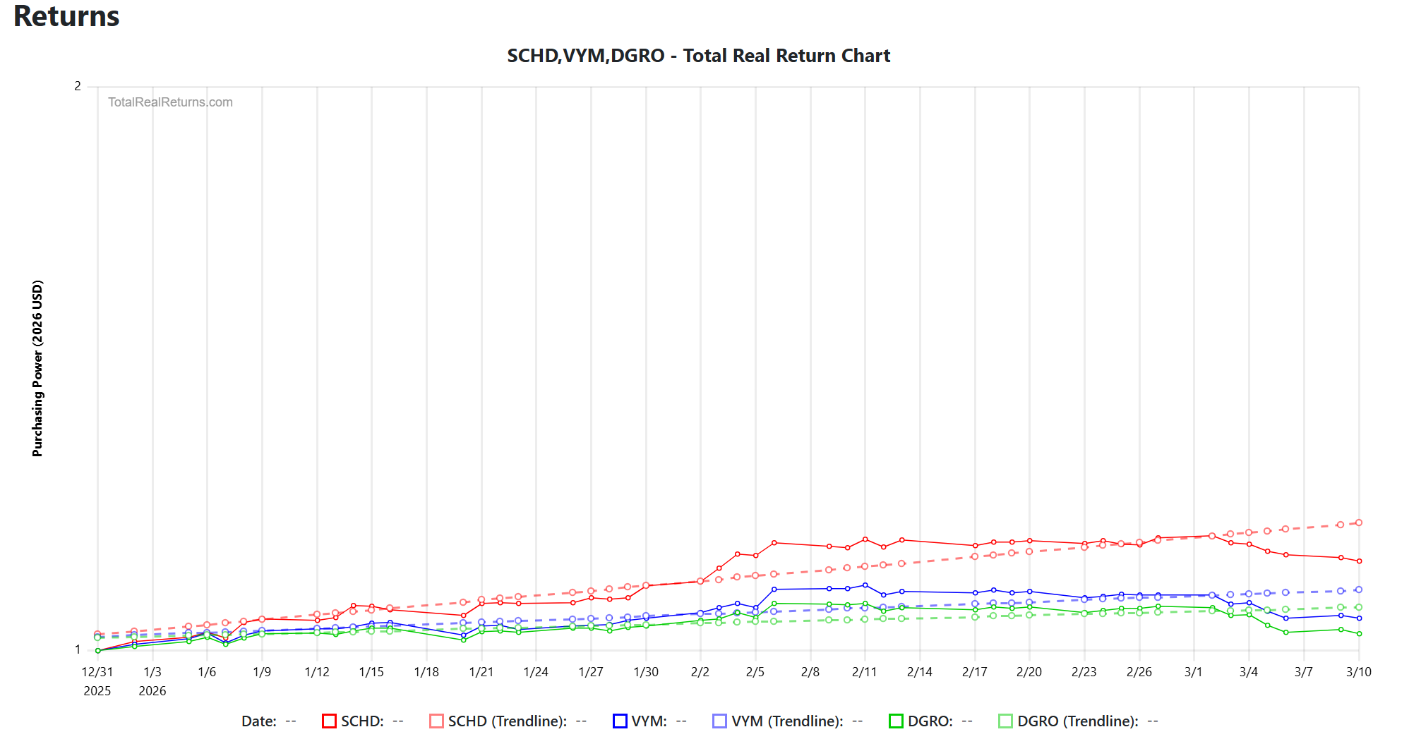 When someone wants a normal dividend ETF they can buy, hold, and reinvest into for snowballing income, they often just want to buy the best one instead of holding multiple at once. 2026 has started off as a tumultuous year, so looking into this year’s performance is a good gauge for how these ETFs can perform in the long run.