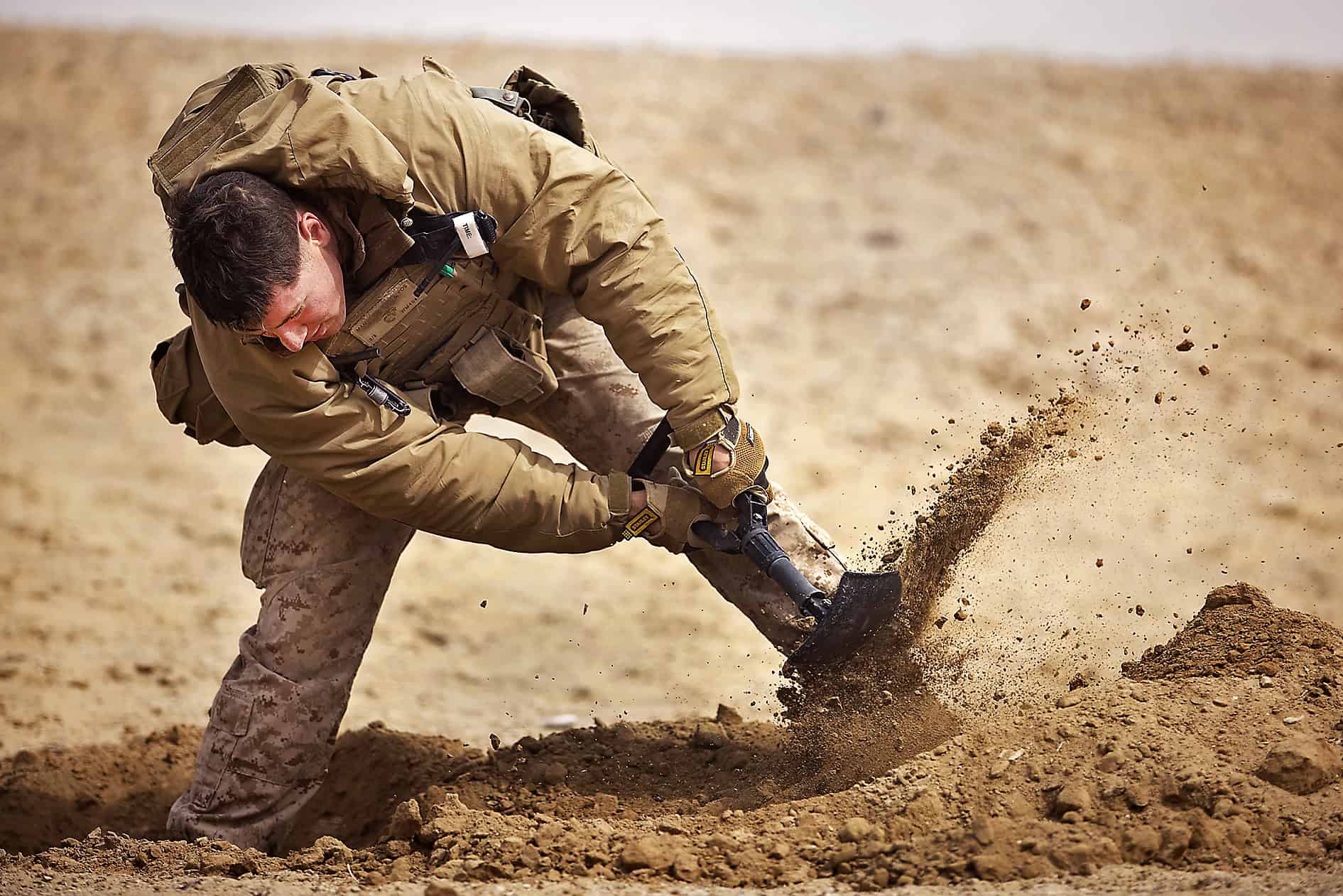 The entrenching tool helps infantry build defensive positions, dig fighting holes, and perform emergency field tasks. It remains a timeless part of the kit.